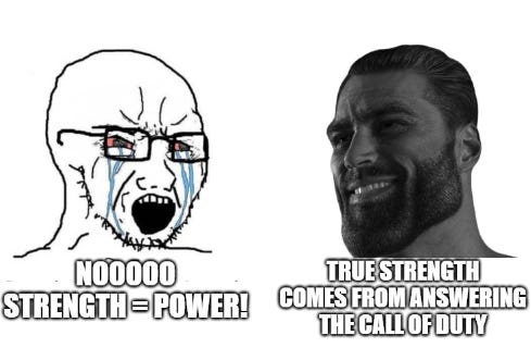 However, it’s easy to get so wrapped up in power-centric games that one forgets the ultimate duty-centric meaning of strength.